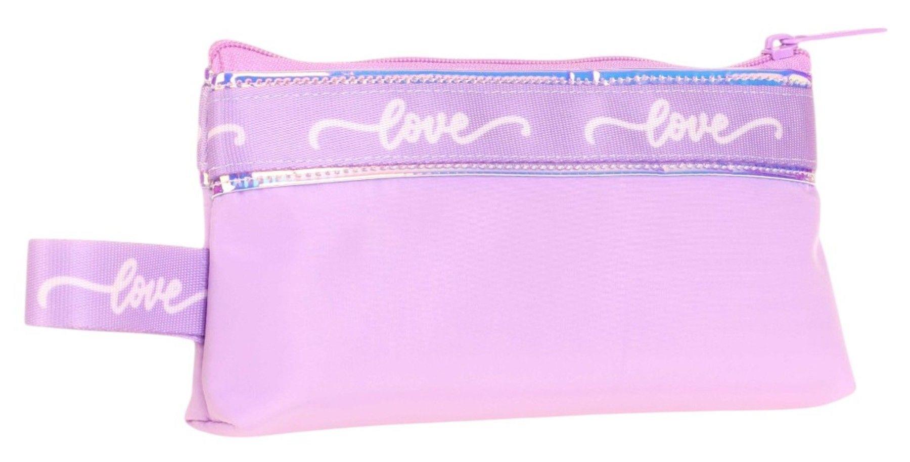 Kaukko Mirror Tek Bölmeli Love Şeritli Cüzdan Tipi Kalemlik - Pembe - KK-K2667