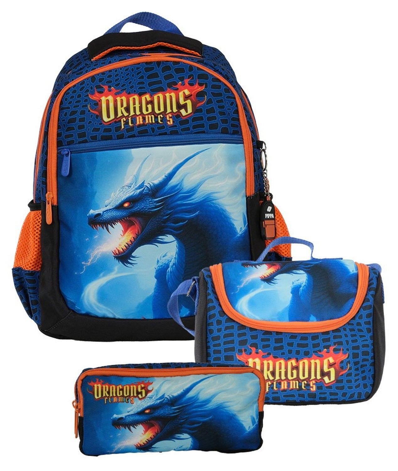 Pippa Erkek Çocuk ÜÇ Gözlü Lacivert Turuncu İlkokul Üçlü Okul Çanta Seti - Dragon/Ejderha - PPSET5280
